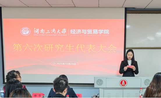 10月28日,经济与贸易学院在湘江楼B417召开第六次研究生代表大会。学院党委副书记曾倩、团委书记傅凌志、研究生第一党支部书记谢芳老师及研究生代表参加。