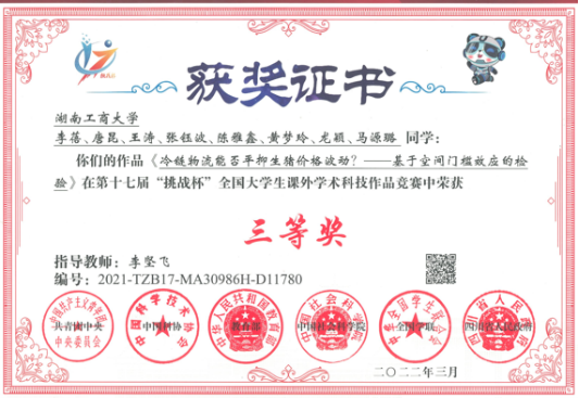 2022年学科竞赛教研室老师指导学生获国家级5项,省级奖11项,其中A类国家级2项以上,A类省级8项以上