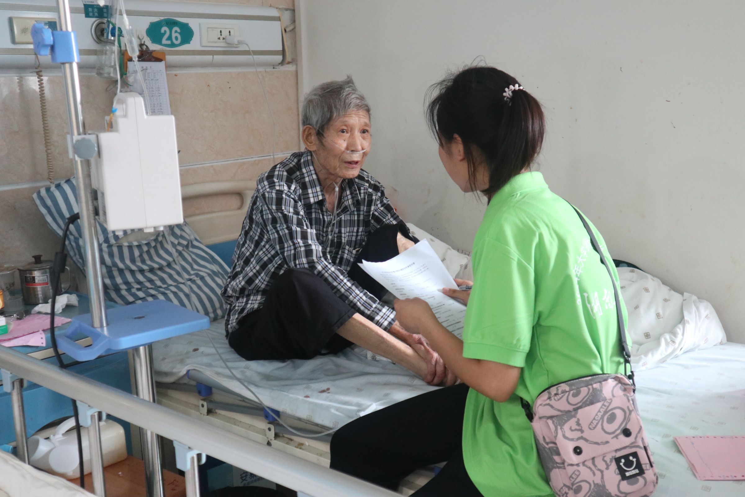 在数字化、智能化日益成为日常生活主流的今天,不少老年人因缺乏相应的知识和技能,难以完全享受科技带来的便利。为了积极响应国家"三下乡"号召,深入基层,服务群众,7月8日,湖南工商大学会计学院“智慧助老队”团队前往湖南省长沙市岳麓区景程医院,针对老年人群体开展了一系列的数字技能调查及普及活动。