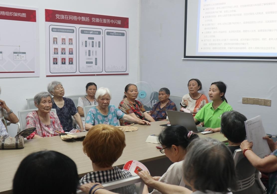 在工作人员的协助下,智慧助老队提前了解社区老年人基本情况,并顺利开展了关于电信诈骗与保健品诈骗的宣讲活动,宣讲内容全面详细,不仅介绍“电信诈骗与保健品诈骗”的骗局类型,而且对于已遇到的诈骗所能做出的挽救行为等做出了一系列的宣讲与普及,以此来进一步联系实际,提高老人的防范意识。同时,智慧助老团队为参与此次活动的老人准备了小礼品,此次活动反响甚好,参与度极高,到场人数50余人。进一步提高了老人们参与此类活动的积极度,共同守护老年人幸福晚年。
