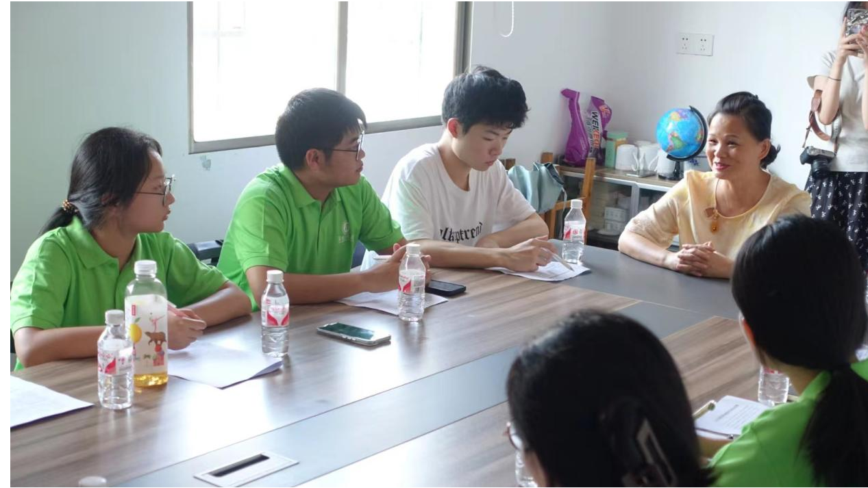 图为社区工作人员彭姐与各实践团队进行座谈交流