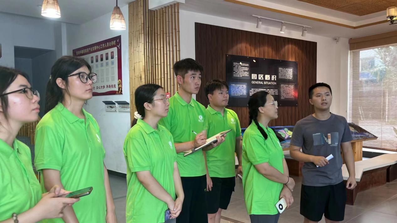 在羊楼司镇,临湘竹产业发展中心受镇政府委托,沈部长为调研团队进一步规划完善行程安排,深谈后续合作计划。年轻的王拓副部长更是亲自上阵,详尽介绍了羊楼司镇“三园一城两片区”的产业布局及竹产业发展的五个关键阶段,让师生们对当地竹产业有了全面的认识。