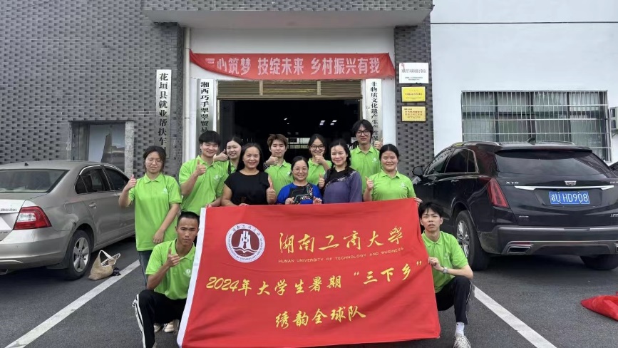 2024年7月12日,湖南工商大学暑期“三下乡”绣韵全球队来到了位于湘西土家族苗族自治州的非遗苗绣代表公司——湘西巧手翠翠贸易有限公司,对公司创始人兼总经理麻志银女士关于公司苗绣产品进行采访。