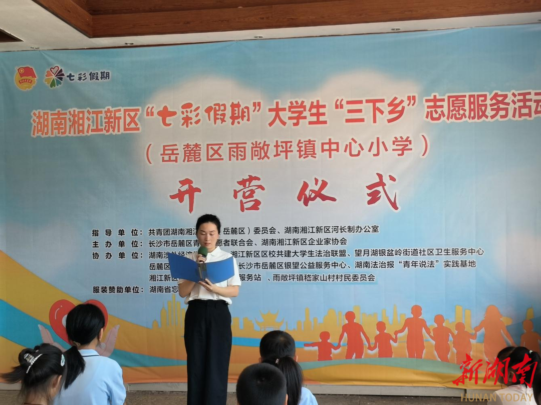 新湖南客户端7月8日讯(记者 齐果 通讯员 曾巧玲 )在湘江新区河长制办公室、共青团湖南湘江新区(岳麓区)委员会指导下,由长沙市岳麓区青年志愿者联合会联动新区各机关单位、事业单位、社会团体等组织开展的大学生“三下乡”志愿服务活动正式拉开帷幕。一系列以“七彩假期”为主题的暑期夏令营同时在岳麓区雨敞坪镇中心小学、坪塘街道绿荷塘小学两个乡村教学点有序开展,为乡村留守儿童带去知识的光芒。