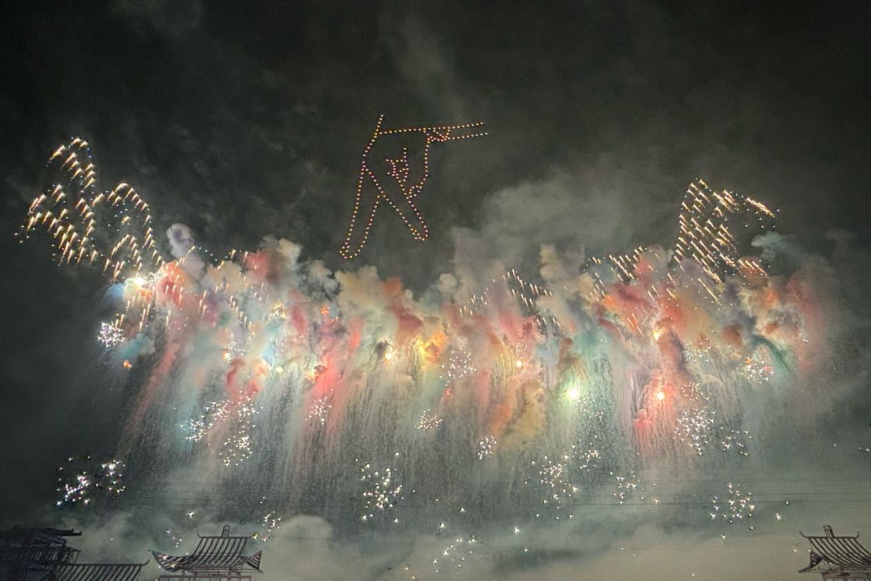 据悉,本次烟花秀是国内首次无人机搭载彩烟新尝试。利用全新的Promax设计,数百架无人机在夜空中编队飞行,精准绘制出“庆国江山图”,创造出令人叹为观止的视觉奇观。