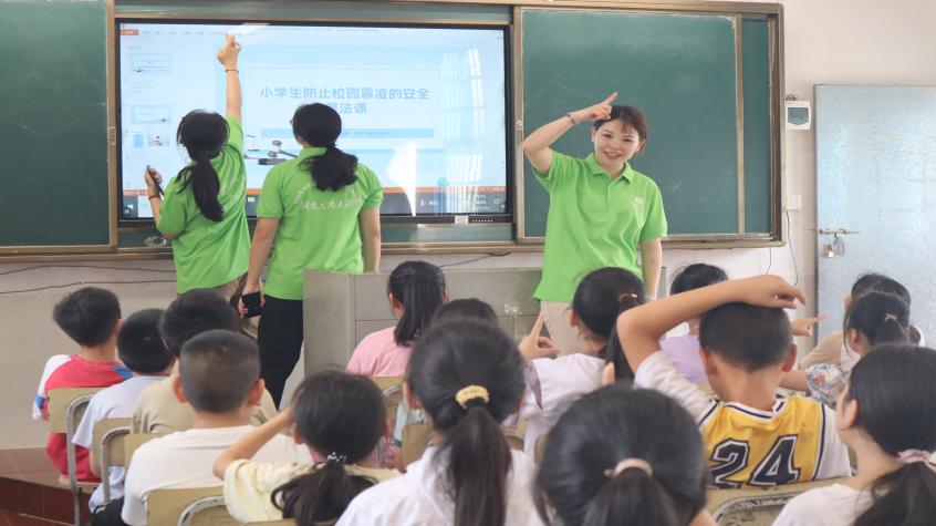 7月14日,湖南工商大学暑期“三下乡”“律音护苗”关爱教育团在宁乡市喻家坳乡中心小学开展法律宣讲及相关情景剧展示活动并通过音乐治疗共筑少年心灵之路。寓教于乐,生动有趣地宣讲法律知识,有助于构建和谐、健康的成长环境。