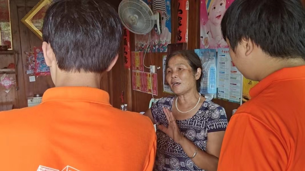 图为采访大园村村民