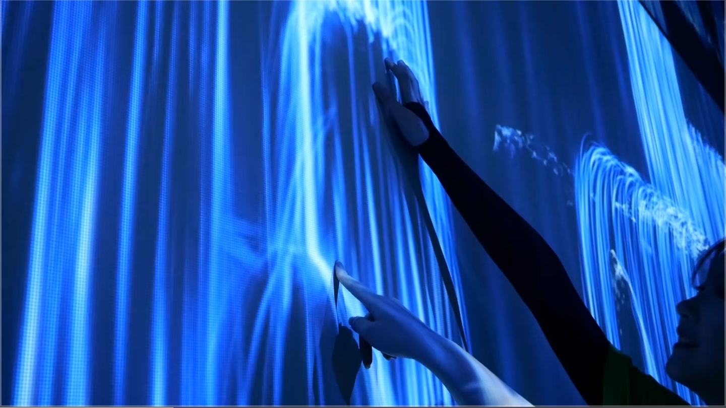 调研过程中,团队特别关注了数字科技赋能传统文化的路径。通过数字影片复原的岳麓书院门楣场景,完美的展现了其蕴含的文化魅力和“经世致用,实事求是”的精神内涵。在绿色标杆空间内,只需通过一些简单的手势与动作,就能触发数字互动的效果,如杜鹃绽放、星光汇聚,水波荡漾等,这些互动展示让团队成员深刻体会到了数字科技在增强文化体验方面的独特优势。