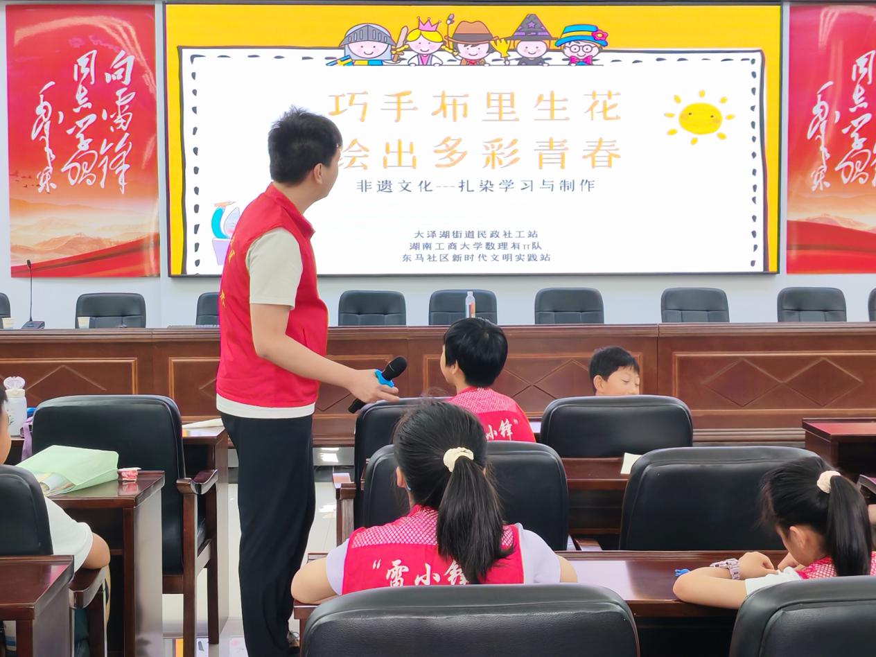 邂逅非遗,走进扎染。为让青少年深入了解扎染,上午,志愿者蒋祺以“巧手布里生花,绘出多彩青春”为题,开展科普教育。活动中,志愿者通过层层设疑的方式,让小朋友们沉浸式走入扎染,并结合实际生活和视频向小朋友们深层次地讲解了扎染的制作过程。本次活动,不但让小朋友们邂逅了扎染,还引发了他们对传统非遗的深刻思考。