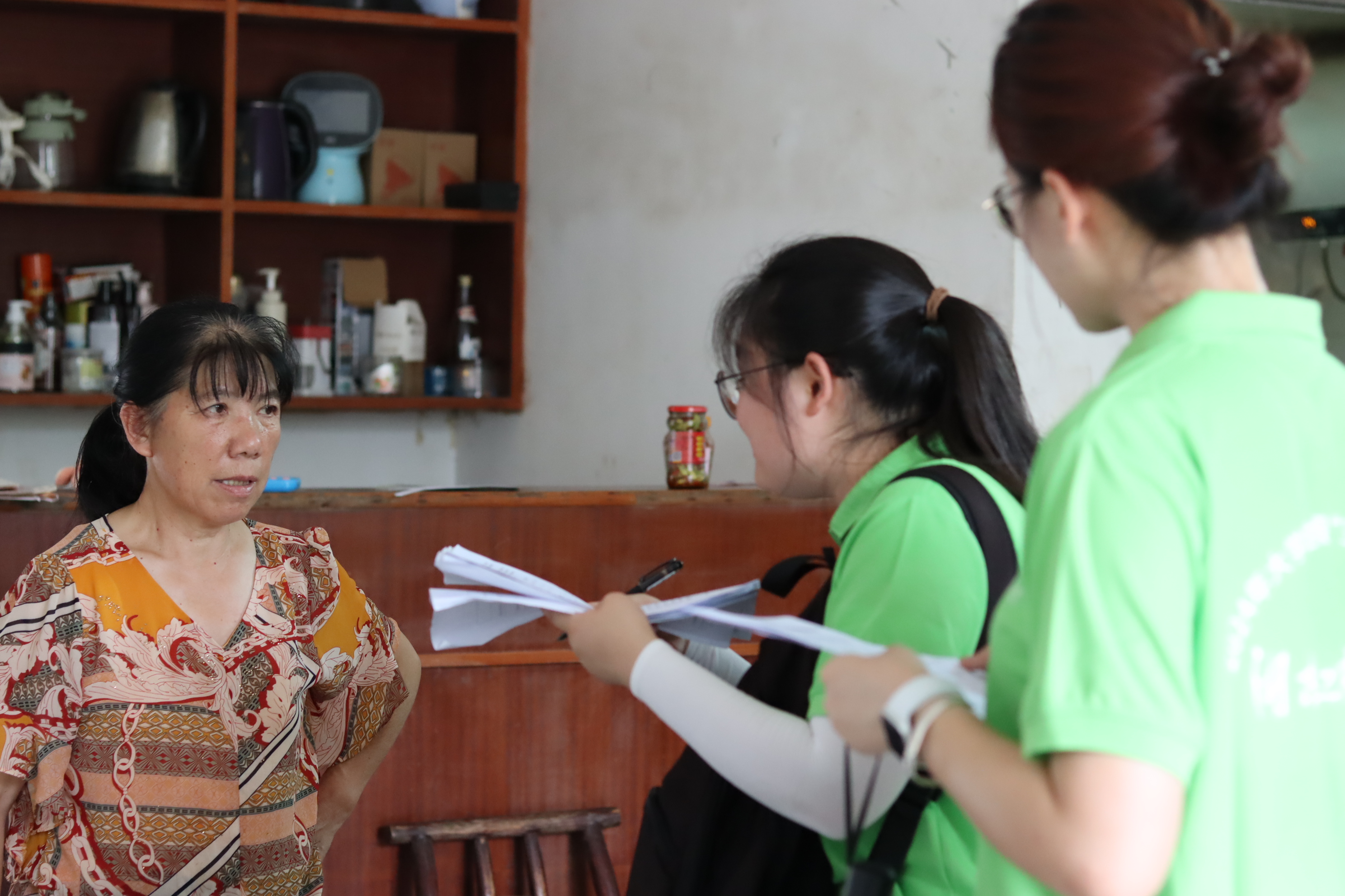 图为队员探访村民并针对宅基地相关问题进行询问