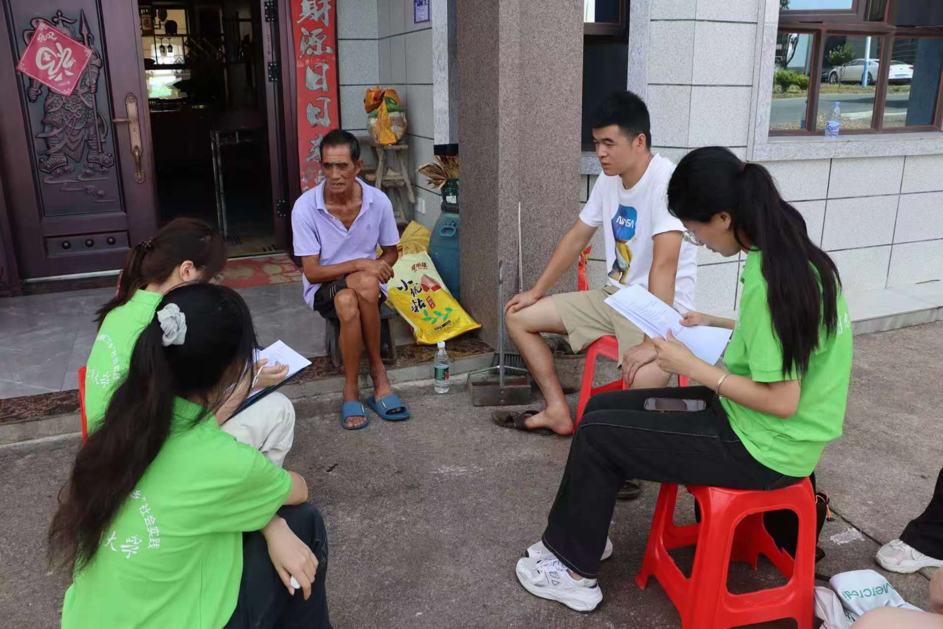 团队成员去村民家进行采访