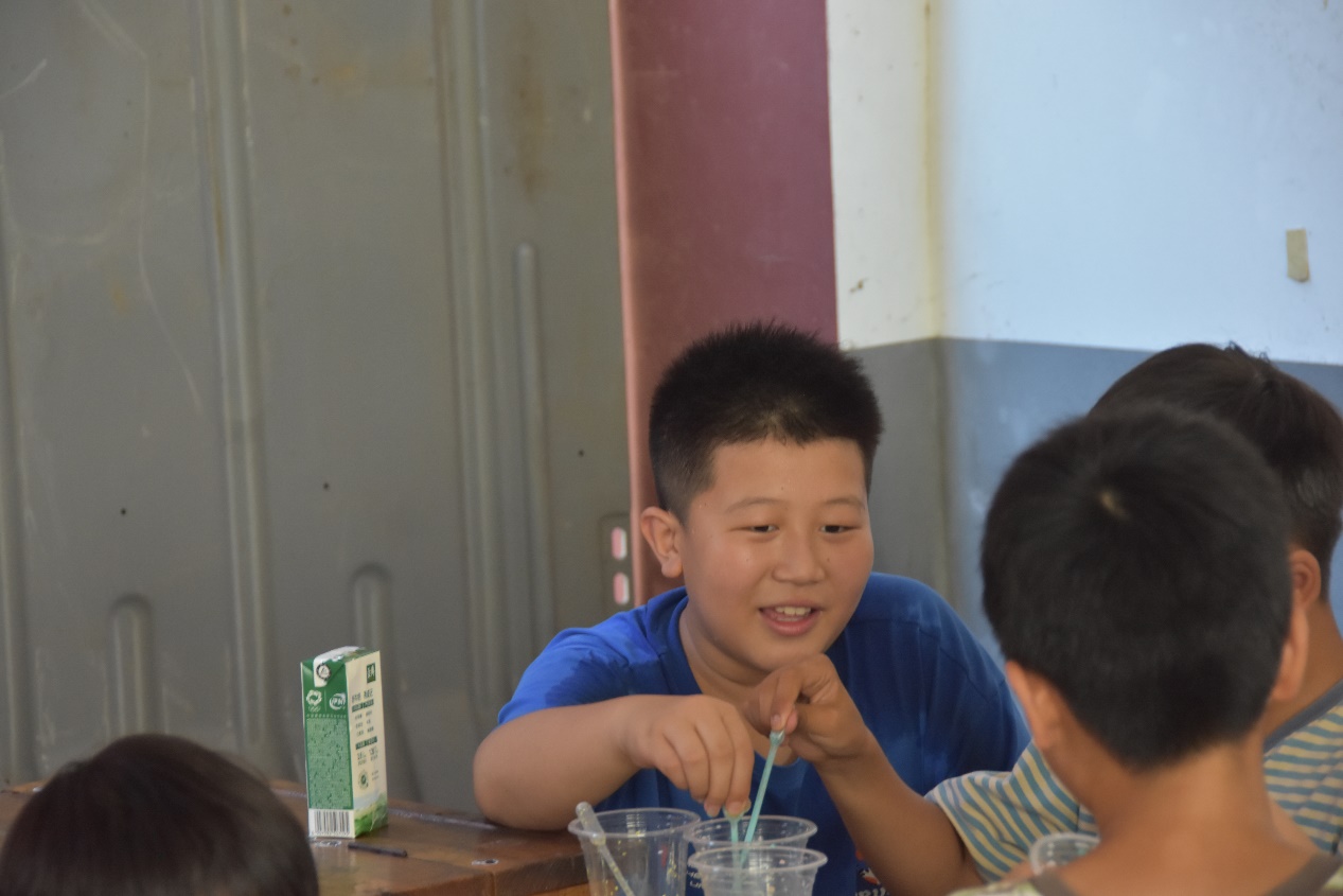 图为队员们为孩子们准备牛奶烟花制作材料