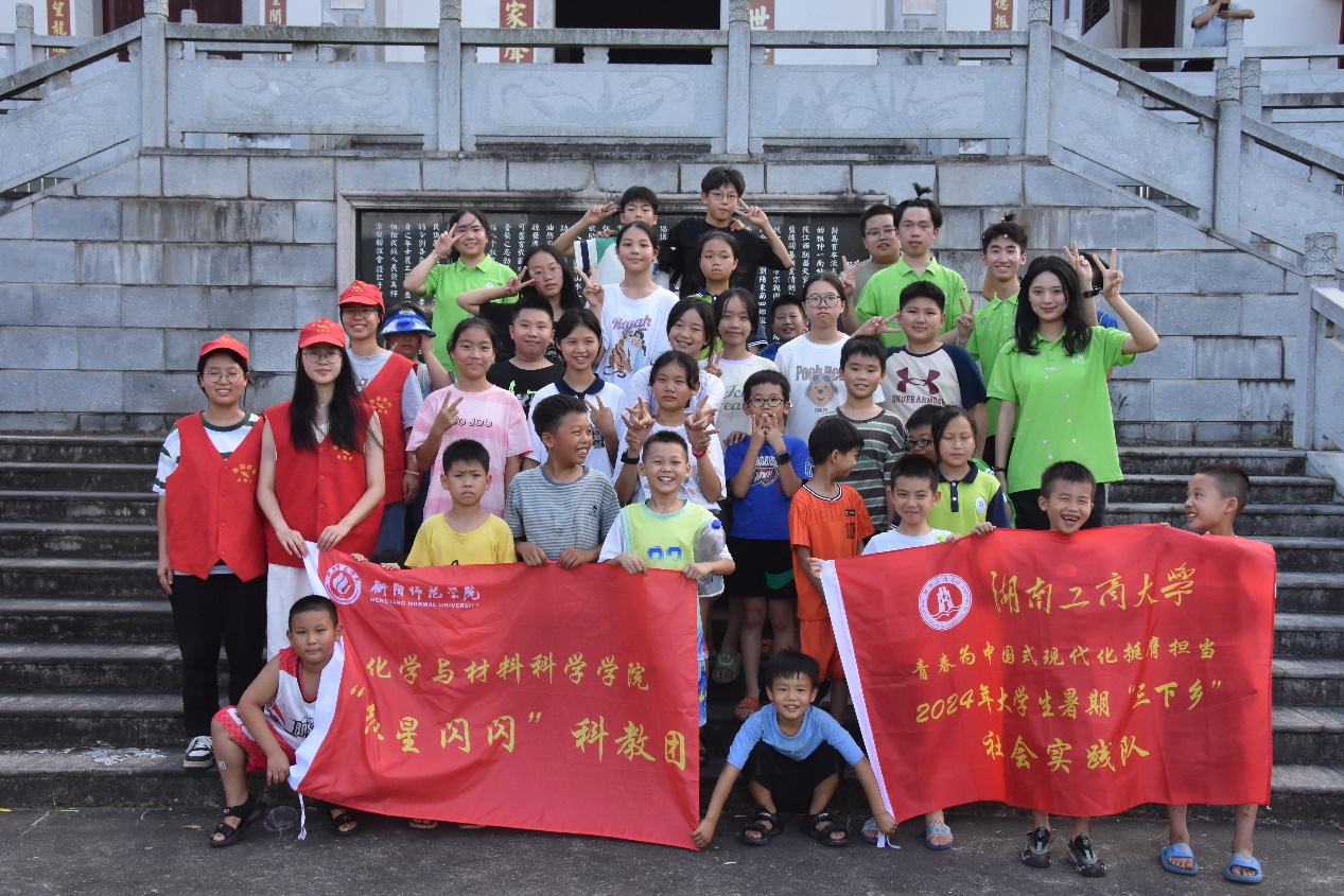 图为“花火湘成”队携手“红星闪闪”队与孩子们合影