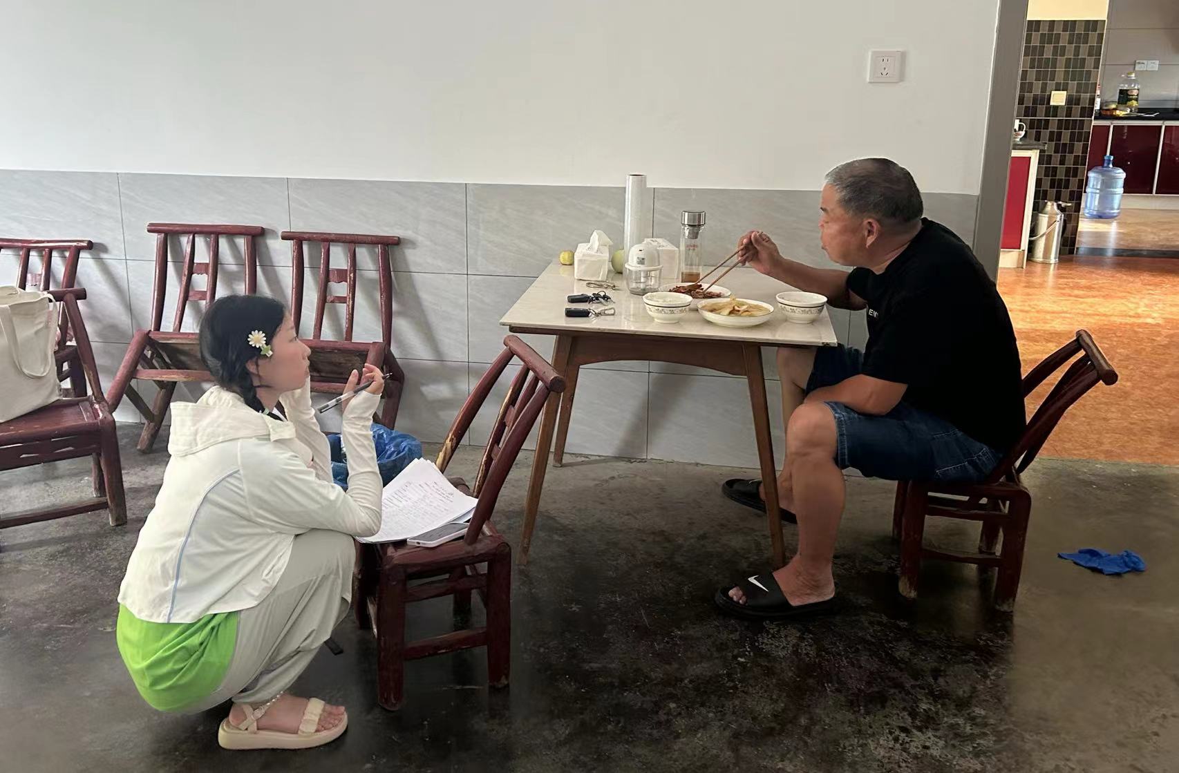 图为团队成员正在询问村民宅基地流转意愿